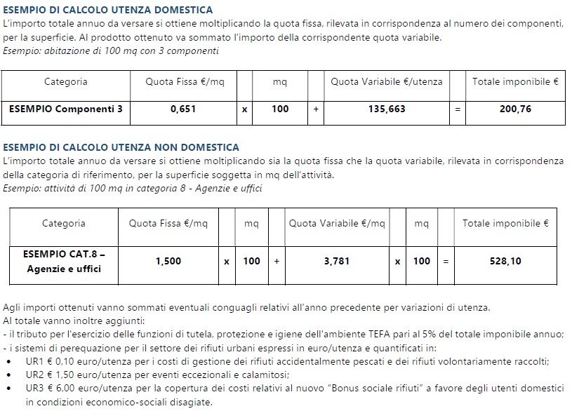 REGOLE DI CALCOLO DELLA TARIFFA TARI