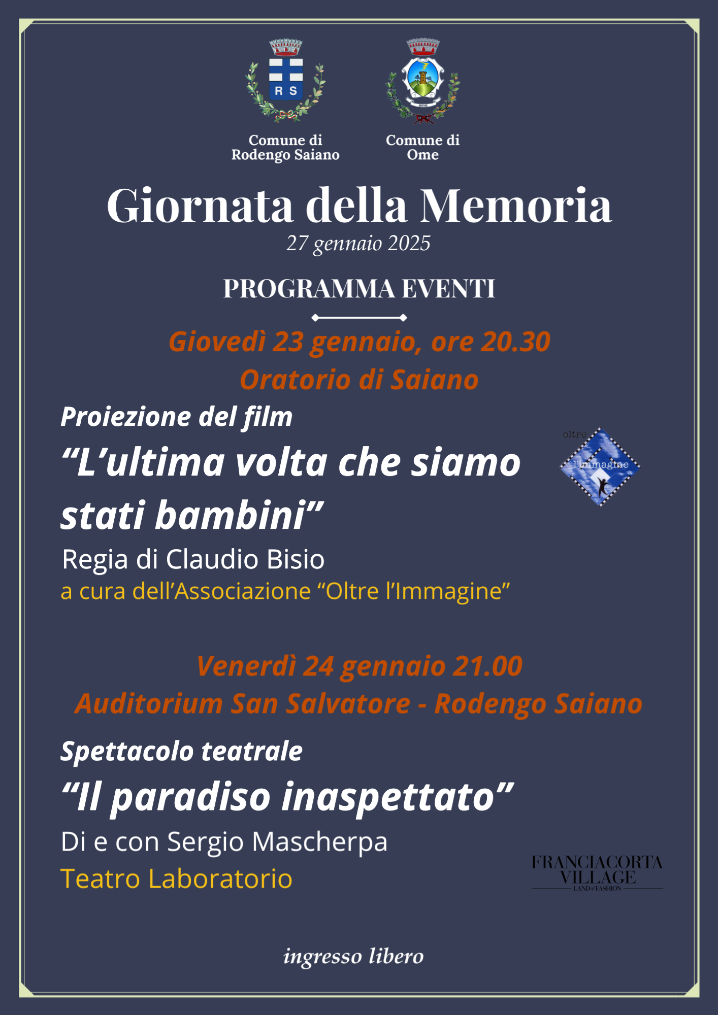 Comune di Rodengo Saiano e Comune di Ome propongono due serate di riflessione in occasione della Giornata della Memoria